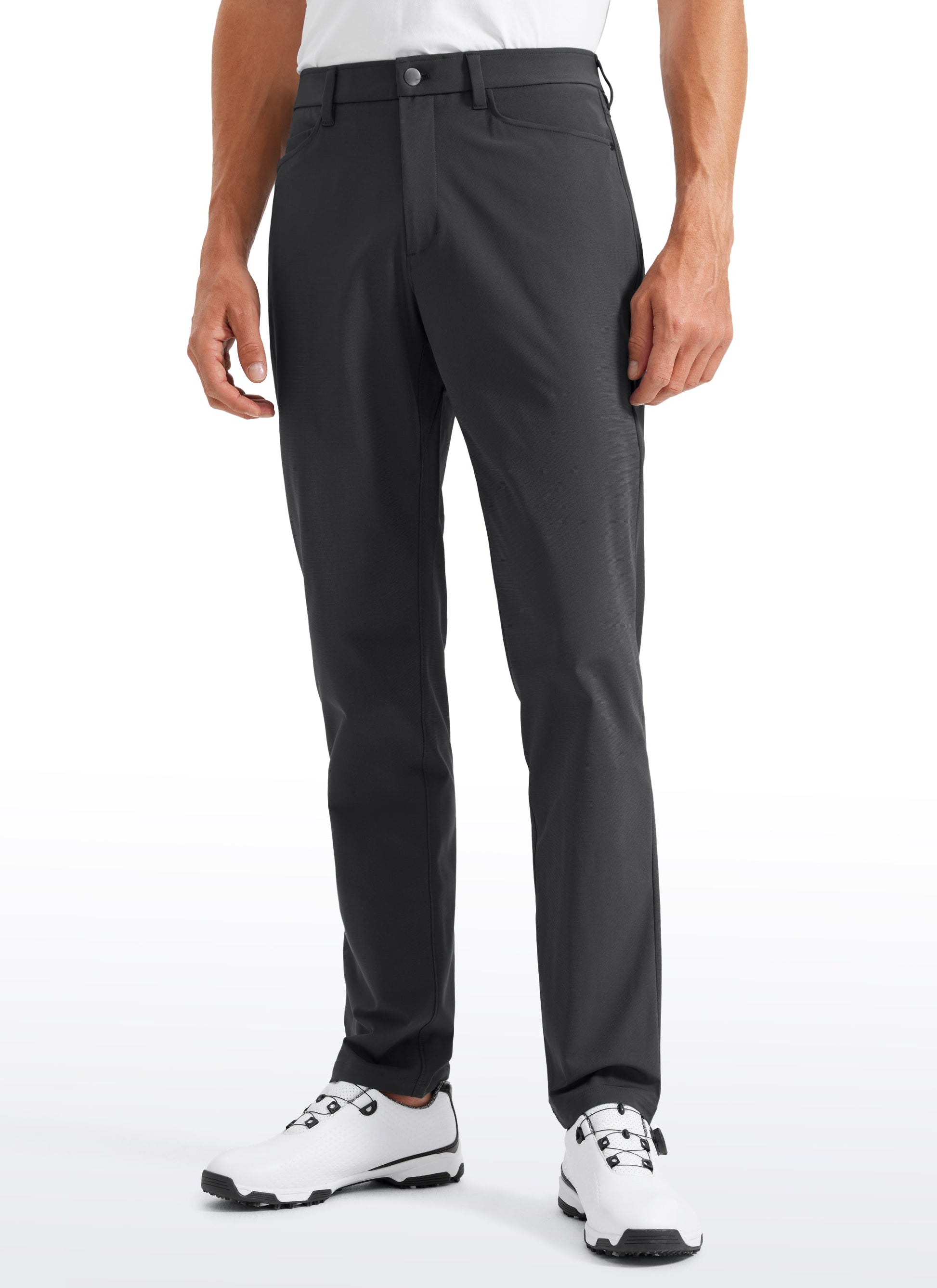 Men's 5-pocket pants are made of smooth, stretchy, and lightweight fabric, allowing you to move comfortably all day. Breathable, wrinkle-free blend and quick dry. Multi-pockets to store mobile phones, cards, and keys. Great as golf pants, slacks, or dress pants.